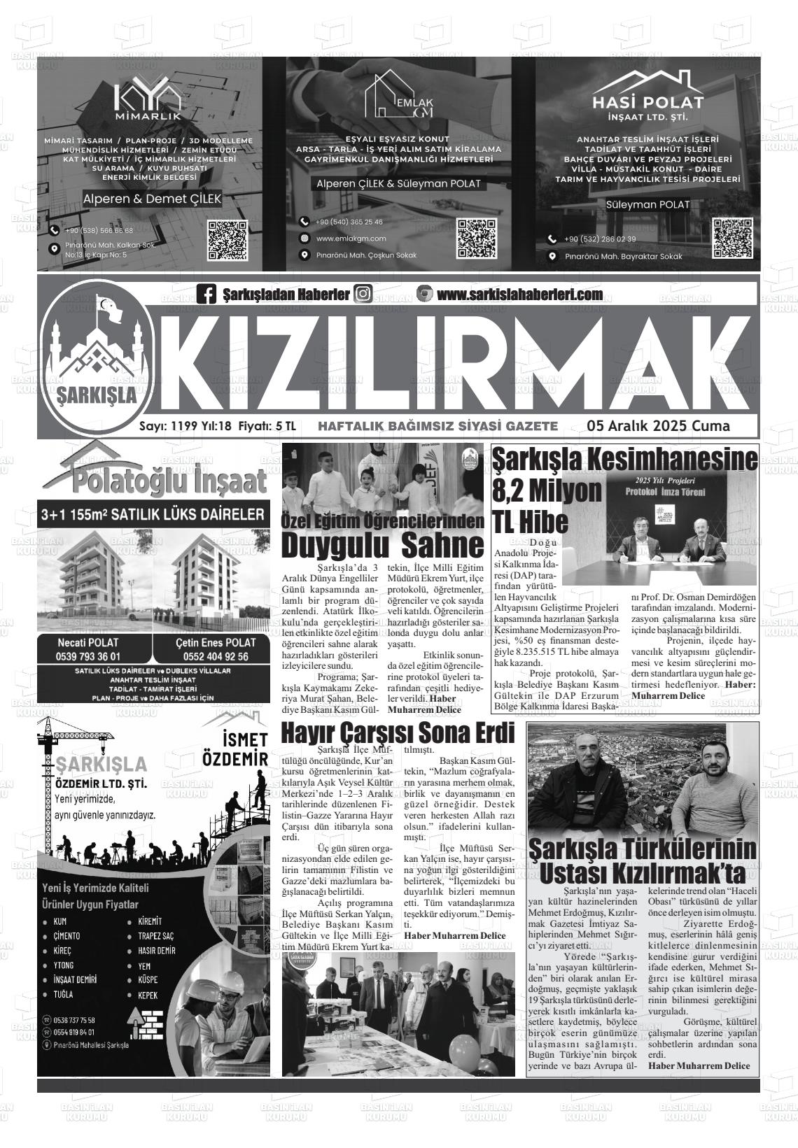 Sİvas Yerel Gazeteleri 05 Aralık 2025, Cuma Günü Manşeti