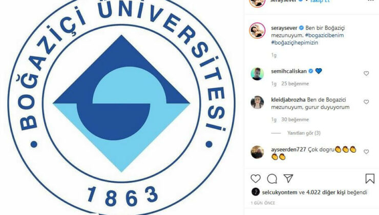 Instagram hesabından Boğaziçi Üniversitesi logosu paylaşan Seray Sever paylaşımına “Ben bir Boğaziçiliyim” notunu ekledi.