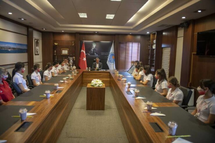Mersin Büyükşehir Belediyesi Gençlik ve Spor Kulübü (GSK) Kadın Hentbol Takımı, Mersin Büyükşehir Belediye Başkanı Vahap Seçer’i ziyaret etti. Başkan Seçer, 2020-2021 sezonunda 2. Lig B Grubu’nda namağlup şampiyonluğu göğüsleyen ve Mersin’de hentbol branşında 12 yıl aradan sonra gösterilen büyük başarıyla 1. Lig’e yükselen GSK Kadın Hentbol Takımı ile bir araya geldi.