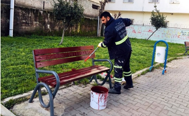 Akdeniz sakini vatandaşların gündelik yaşamını kolaylaştırırken, mahallelerin çehresini de değiştiren ekipler, yaklaşan bahar mevsimi ile birlikte, park ve bahçelerde bulunan banklar, kamelya, oyun ve spor gruplarını da boyayıp yeniliyor, zarar gören grupları tamir ediyor veya yenisiyle değiştiriyor.