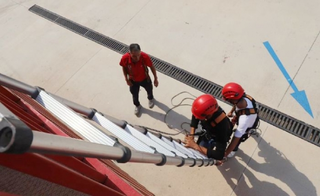 EĞİTİM KULESİNDE YÜKSEKTE ÇALIŞMA TEKNİKLERİ UYGULAMALI OLARAK GÖSTERİLDİ