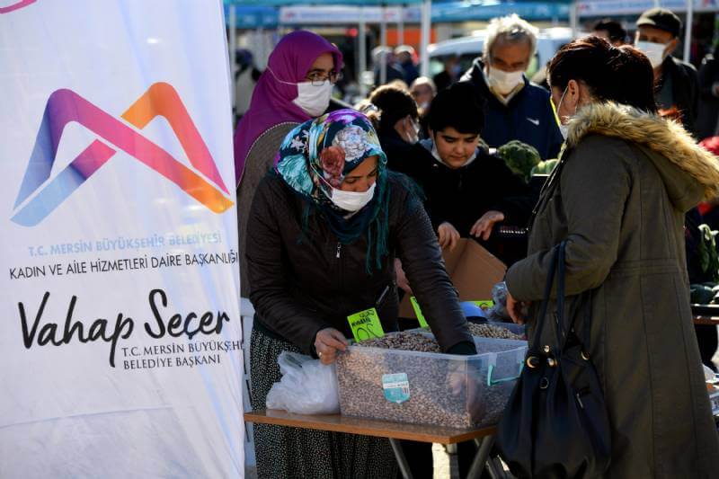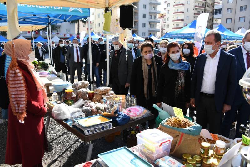 Erdemli ilçesinde Mersin Büyükşehir Belediyesi’nin öncülüğünde üretici kadın standları kuruldu. Etkinlik alanını ziyaret eden Mersin Büyükşehir Belediyesi Başkanı Vahap Seçer, üretici kadınların ilgisiyle karşılaştı.