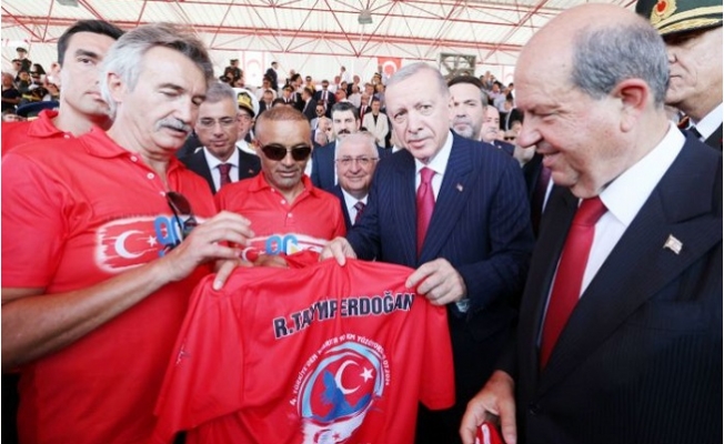 ‘Bayrağımız Kulaçlarla Kıbrıs’a sloganıyla Anamur İskelesi’nden düzenlenen tören ile Anamur’dan KKTC’ye uğurlanan İstanbul Yıldızlar Yüzme Spor Kulübü sporcuları, sırasıyla Türk bayrağı taşıyarak Kıbrıs Barış Harekatı’nın 50’inci yıl dönümü dolayısıyla KKTC’de düzenlenen törende Cumhurbaşkanı Erdoğan’a bayğrağı teslim ettiler.