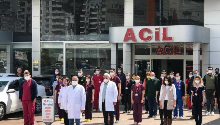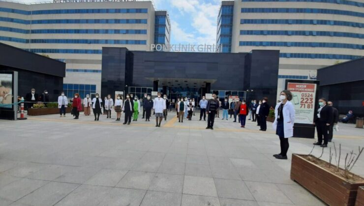 Koronavirüsten hayatını kaybeden doktor ve sağlık çalışanları ‘Covıd-19 Nedeniyle Kaybettiğimiz Hekim ve Sağlık Çalışanlarını Anma Günü’ nedeniyle Mersin’de bir araya gelen sağlık çalışanları koronavirüs mücadelesinde hayatlarını kaybeden 391 sağlık çalışanını andı ve bir dakikalık saygı duruşunda bulundu.