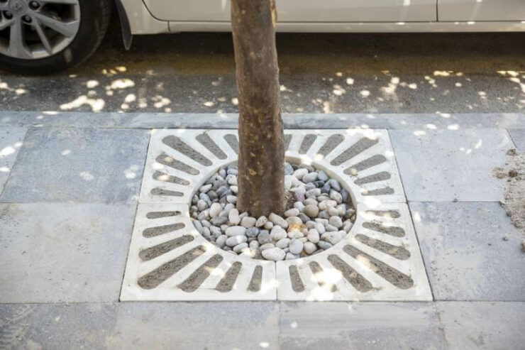 Akdeniz ilçesinde bulunan ve bir süre önce yenileme çalışmalarının tamamlandığı Hastane Caddesi’nde Park ve Bahçeler Dairesi ekipleri, ağaç diplerine kompozit ızgaralar yerleştiriyor. Kompozit ağaç dibi ızgaraları hem ağaç köklerini insan kaynaklı atıklardan koruyor hem de daha estetik bir görüntü oluşturuyor.