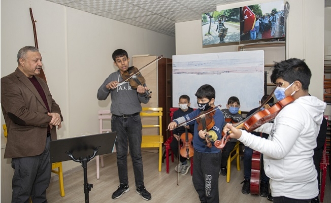 Roman vatandaşların yoğun olarak yaşadığı ve kentin dezavantajlı mahalleleri arasında yer alan Akdeniz ilçesi Turgutreis Mahallesi’ndeki eğitimler, Akdeniz Roman Dernekleri Federasyonu’nun yer aldığı binada veriliyor. Geçimini çoğunlukla müzikle sağlayan ailelerin çocukları klarnetten kemana kadar birçok enstrüman üzerine eğitim alıyor. Bu sayede yeteneklerini bilgiyle güçlendiren çocuklar, hayallerinin de peşinden koşuyor. Eğitim-öğretime de devam eden çocuklar, pandemi sürecinin yarattığı eksiklikleri yine Büyükşehir’in verdiği kurslarla tamamlıyor.