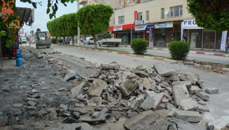 Yenice’nin Tarsus yönü girişinden başlayıp, Adana istikameti çıkışına kadar uzanan ve trafik akışının yoğun olduğu Atatürk Bulvarı üzerinde yıpranan kaldırım ve refüj taşlarının sökümü gerçekleştiriliyor. Ekipler, yıpranan yol zeminini de kazıyarak yenileyecek.