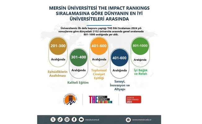 THE Etki Sıralamasında Üniversitemiz Birleşmiş Milletler Sürdürülebilir Kalkınma Hedeflerinden başvuru yaptığı “Eşitsizliklerin Azaltılması” alanında Dünya sıralamasında büyük başarı göstererek 201-300 bandında, “Kaliteli Eğitim” alanında 301-400 bandında, “Toplumsal Cinsiyet Eşitliği” ile “Sanayi, İnovasyon ve Altyapı” alanlarında 401-600 bandında, “İyi Sağlık ve Refah” alanında 801-1000 bandında yer aldı.