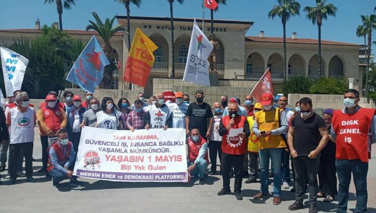 1 Mayıs Emek ve Dayanışma Günü, koronavirüs kısıtlamaları ve tam kapanma nedeniyle Mersin Valiliği’nin özel iziniyle Mersin Emek ve Demokrasi Platformunu oluşturan kurumların birer temsilcisinin katılımıyla koronavirüs tedbirlerine uyularak kutlandı. Cumhuriyet Meydanı’nda yapılan törende 1 Mayıs çelengi sunulurken, kısa yürüyüş yapıldı. 1 Mayıs yürüyüşün ardından Mersin Emek Demokrasi Platformu adına DİSK Genel İş Mersin Şube Başkanı Kemal Göksoy açıklama yaptı.