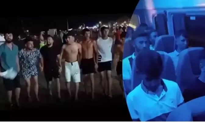 Mersin’de terörist başı ‘Abdullah Öcalan’ sloganları eşliğinde sahil kenarında halay çekerken kaydedilen görüntüleri sosyal medyada yayınlanan terör yandaşlarından 9’u, polis ekiplerince Gaziantep’te yakalanarak gözaltına alındı. Şüphelilere Mersin’e getirilirken, ‘Ölürüm Türkiyem’ şarkısı dinletildi.