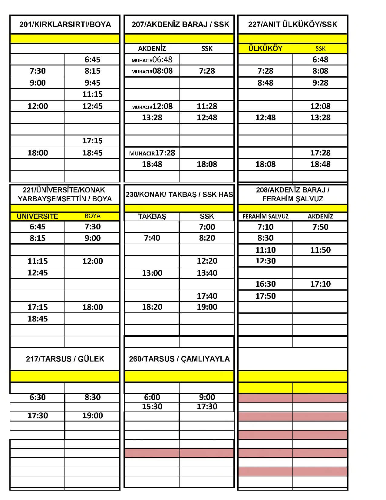 Mersin Büyükşehir Belediyesi Tarsus-Çamlıyayla Şube Müdürlüğü’ne bağlı Toplu Taşıma Grup Amirliği’nde hizmet veren araçların çalışma saatleri, 29 Nisan Perşembe 19.00 ile 17 Mayıs Pazartesi 05.00’e kadar sürecek tam kapanma nedeniyle yeniden düzenlendi.