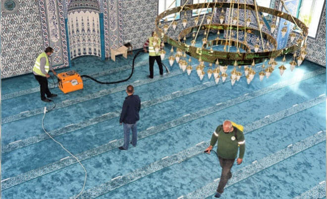 Toroslar Belediyesi Temizlik İşleri Müdürlüğü ekipleri tarafından; ibadethanelerdeki halılar, halı yıkama makinesiyle yerinde yıkanarak hijyenik hale getirilirken, Covid-19’a karşı avlu, tuvalet, kapı kolları ve ayakkabılık gibi temasın olabileceği tüm yüzeyler dezenfekte ediliyor. Koordineli bir şekilde çalışan ekipler, ibadethanelerin çevresinde genel bakım çalışması da yapıyor.