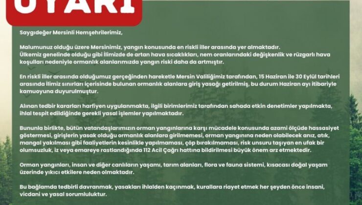 Vali Pehlivan, Mersin’in ülke genelinde orman yangınlarına en yatkın bölgelerden biri olduğunu belirterek, sosyal medya hesabından bir açıklama yaptı. Son dönemde yaşanan yüksek hava sıcaklıkları, nem oranlarındaki değişiklikler ve rüzgarlı hava koşullarının orman yangınları riskini artırdığına dikkat çekti.