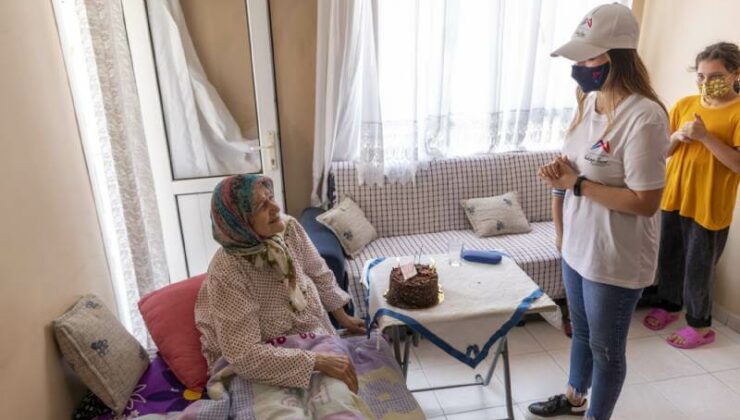 Akdeniz ilçesi Mesudiye Mahallesi’nde ikamet eden ve yalnız yaşayan Vasfiye Teyze’ye, Mersin Büyükşehir Belediyesi doğum günü sürprizi yaptı. ALO 185 Teksin Mersin İletişim Koordinasyon ve Analiz Merkezi çalışanlarının yaptığı pastalı doğum günü sürprizi ile 78 yaşına giren Vasfiye Edis, hayatında ilk kez doğum günü kutladı.