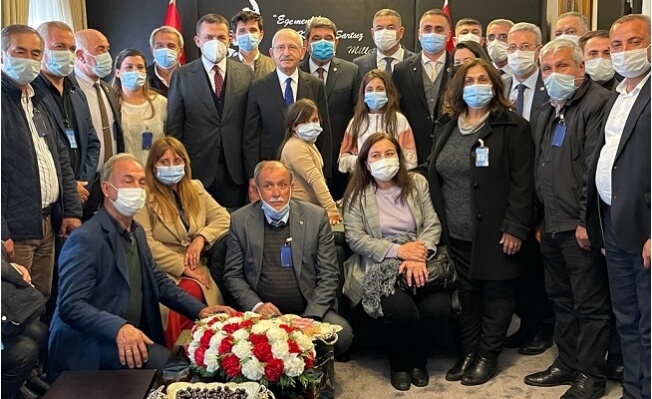 CHP Grup toplantısının ardından CHP Mersin Milletvekilleri Ali Mahir Başarır, Alpay Antmen ve Cengiz Gökçel, CHP Yenişehir İlçe Başkanı Tayar Tahiroğlu, CHP İl Kadın Kolları Başkanı Gülşah Yıldırım Genç, Yenişehir Gençlik Kolları Başkanı Ayhan Kövenç ve mahalle muhtarlarıyla birlikte Genel Başkan Kemal Kılıçdaroğlu’nu makamında ziyaret etti.